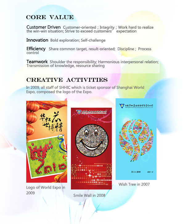 SHHIC has excellent corporate culture and values, which greatly influence and shape every employee in the company. SHHIC staff work hard for the brilliant future under the unified faith.